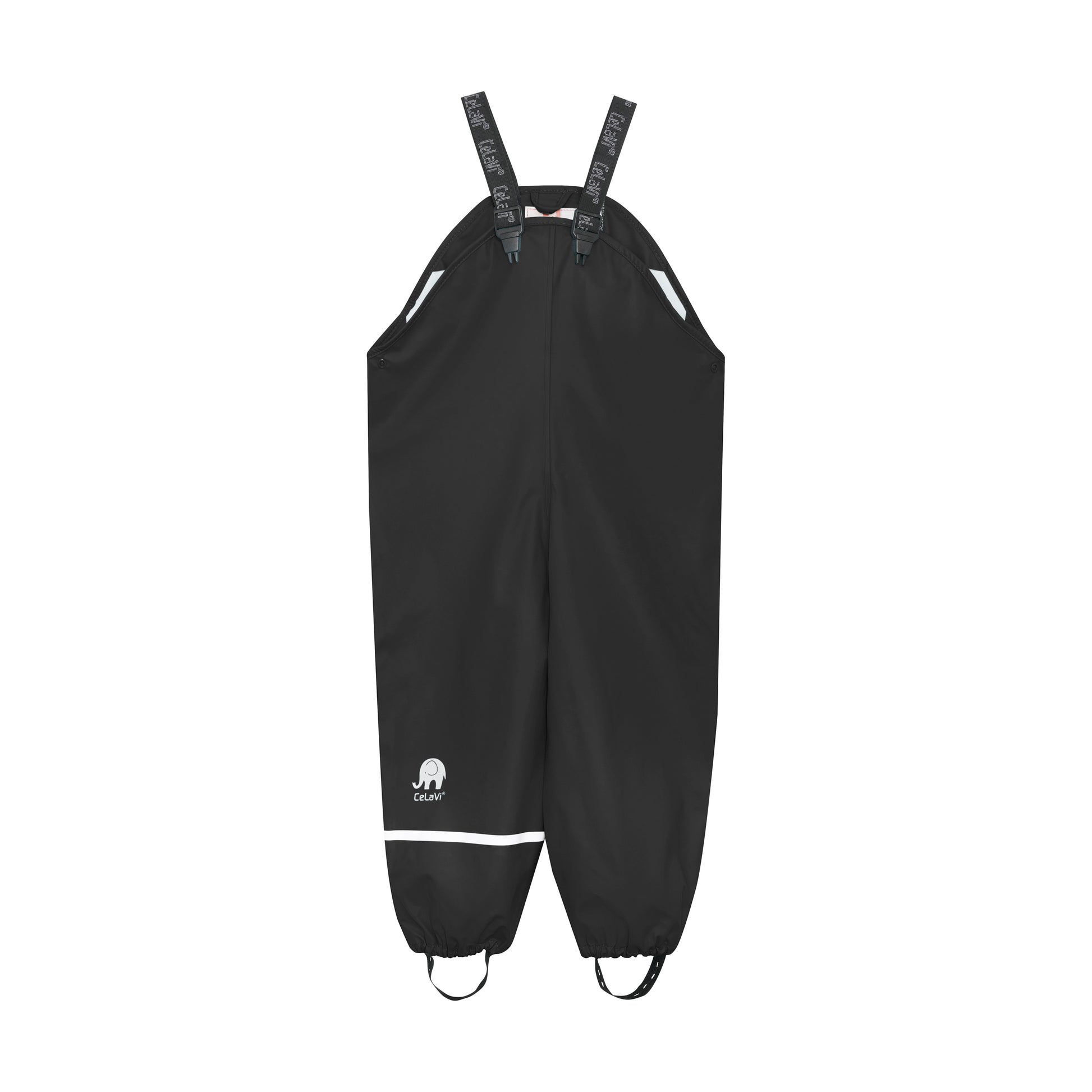 De mindste størrelser (70–100) kommer som smækbukser med justerbare seler og elefantlogo på bryst og ben. Fra str. 110–150 leveres bukserne med elastik i taljen og CeLaVi-logo på bryst og ben.