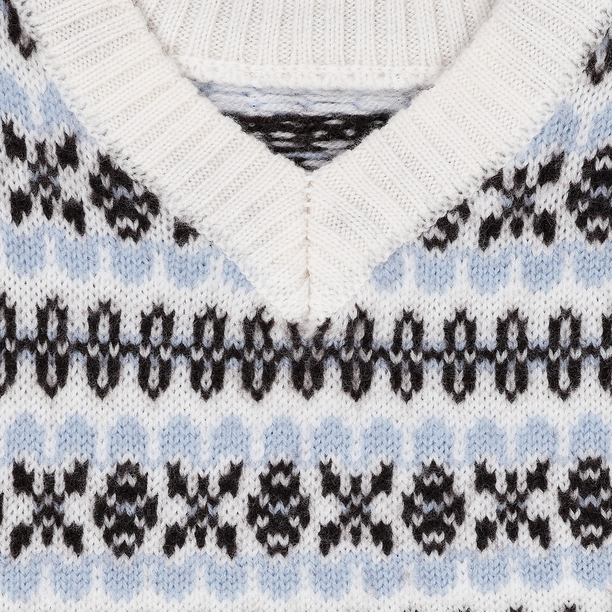 Design: Har et mønstret design, som kan omfatte forskellige motiver, teksturer eller strikkestile