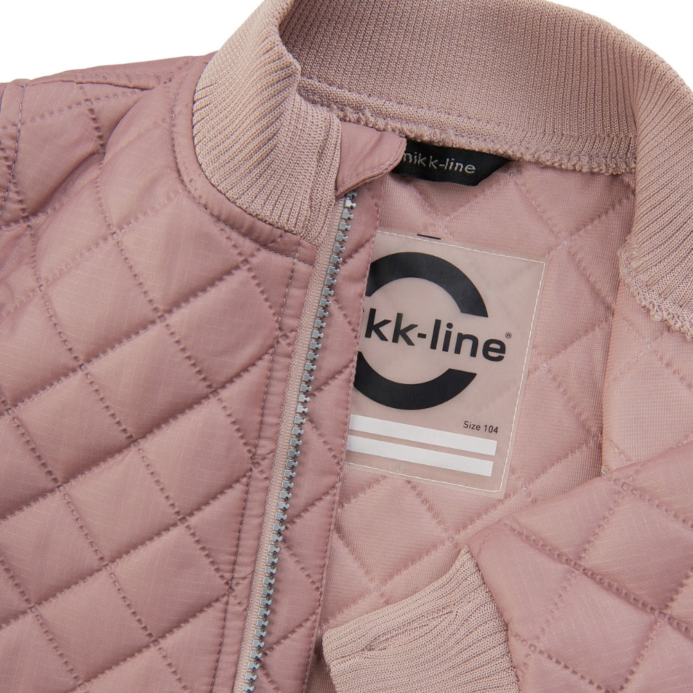 Det quiltede design kombineres med praktiske detaljer, der sikrer god pasform, bevægelsesfrihed og synlighed. Indvendigt er der navnemærke med plads til flere navne – perfekt til genbrug og videresalg.