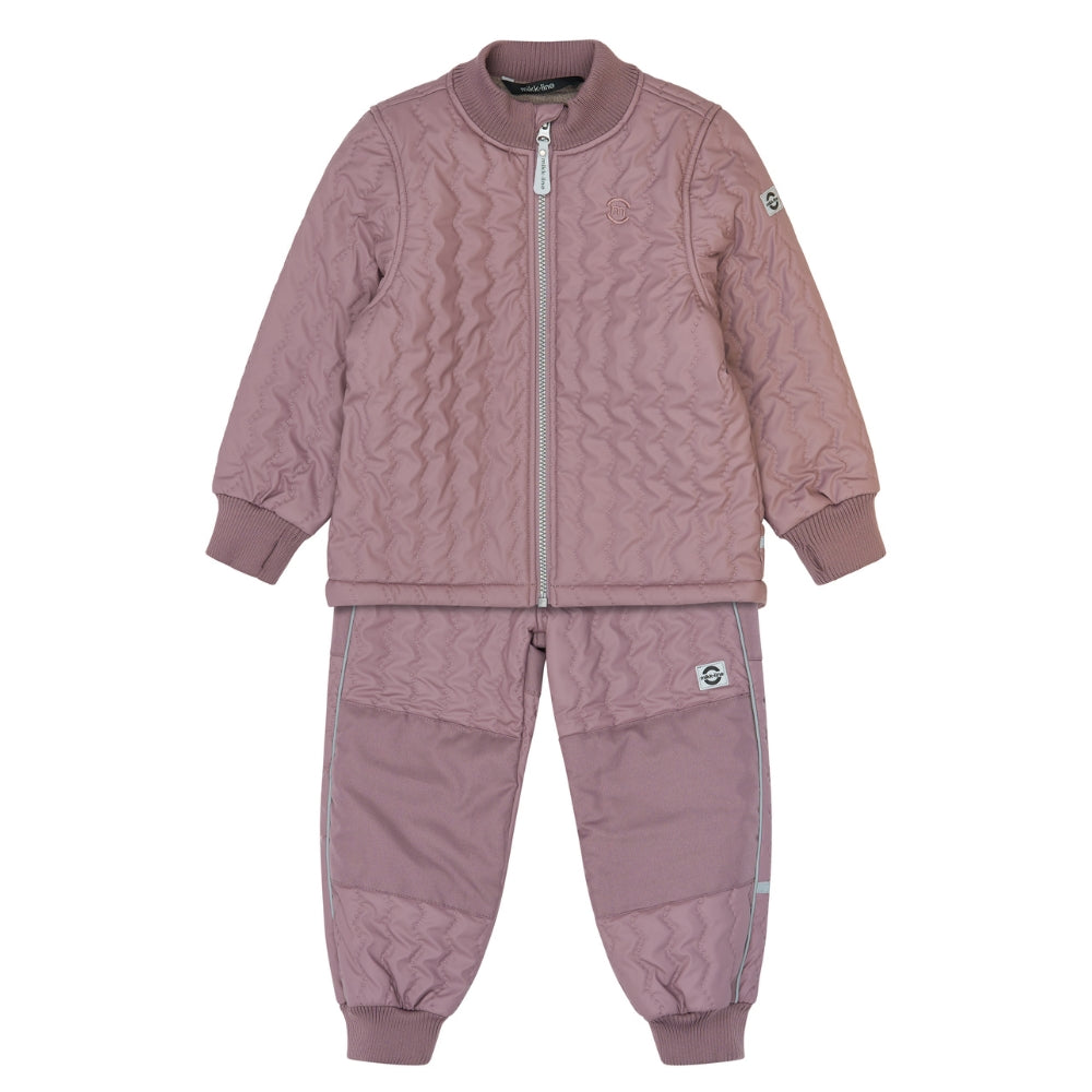 Termosættet har et quiltet unisex design og praktiske detaljer, der sikrer god pasform og bevægelsesfrihed under leg. Indvendigt findes et navnemærke med plads til flere navne – perfekt til genbrug.