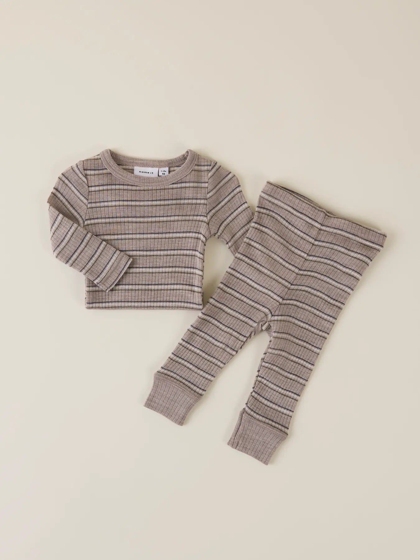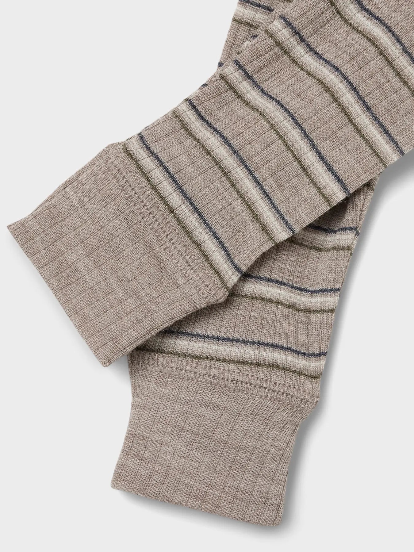 Bløde og behagelige long johns fra Name It i en klassisk grå melange stribet. Underbukserne er lavet i en blød ribkvalitet med merinould og modal, som giver varme, åndbarhed og en glat, blød fornemmelse mod huden.
