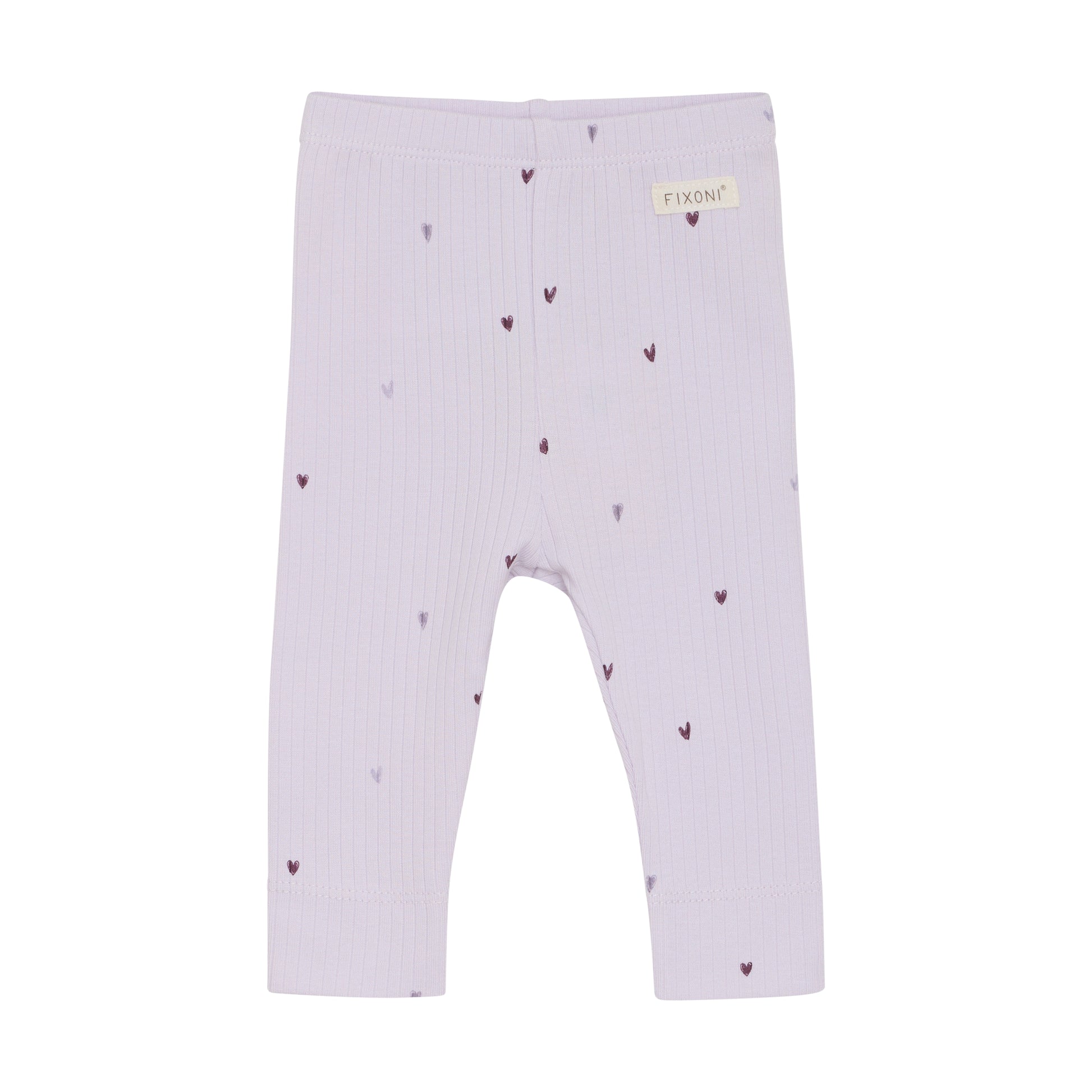 Fine rib leggings fra Fixoni med et sødt hjerte all-over print. Leggingsene er lavet i en blød og strækbar ribkvalitet, som sikrer en god og behagelig pasform.